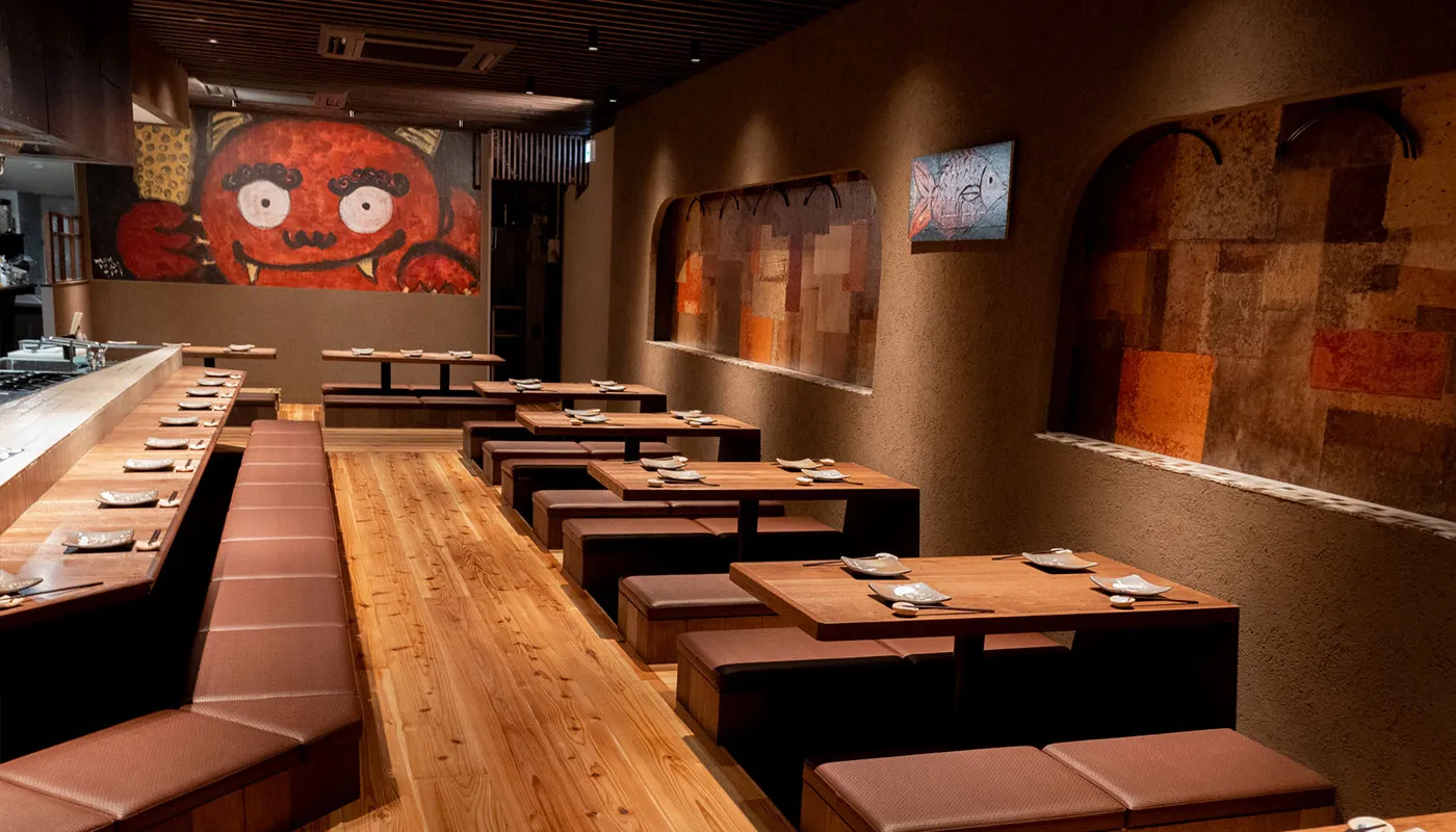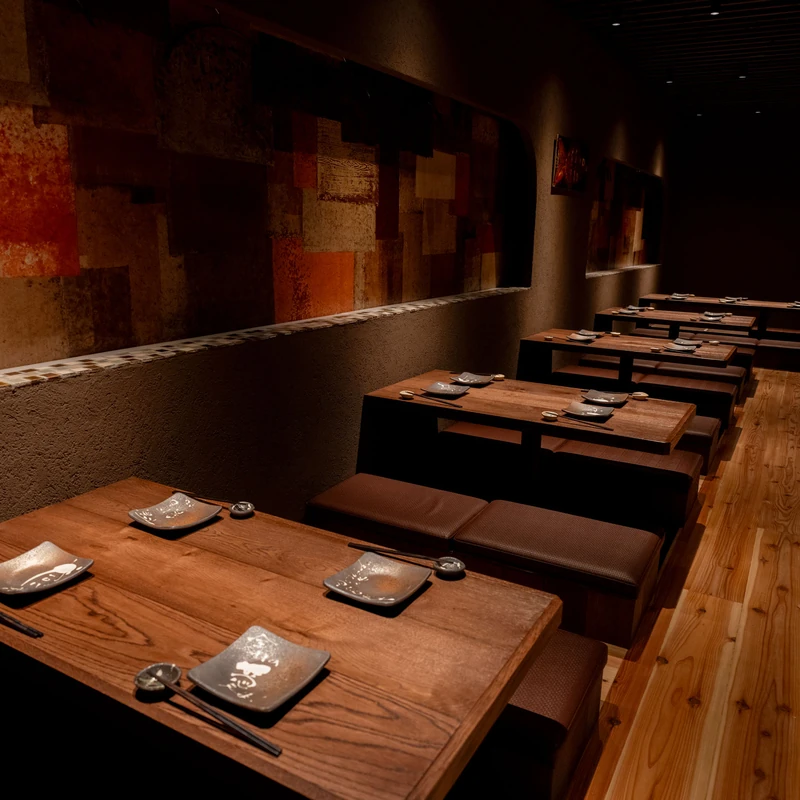 扉を開けると広がるのは、柔らかな照明と自然素材が調和したモダンな空間。隣席との距離感にも配慮した設計で、心地よいプライベート感を演出します。